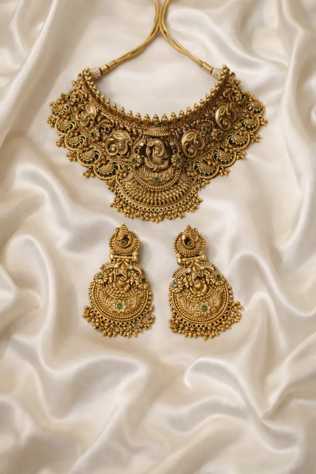 Oh My Friend Ganesha is a divine embrace in jewellery form. Intricately carved temple motifs bring alive the spirit of Lord Ganesha — remover of obstacles and giver of grace. Made for auspicious beginnings, heartfelt celebrations, and days when you seek comfort in something sacred. This is not just a set; it’s a blessing you wear.